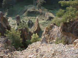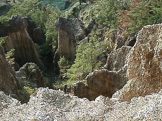 土柱=堆積した土砂が風雨で浸食されて作られた柱