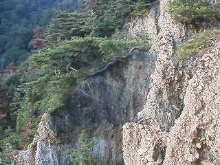 皆さん正面の登山道から見る。この土柱の頂上から見てみた。ポロポロの土かと思えば大変固い。
