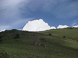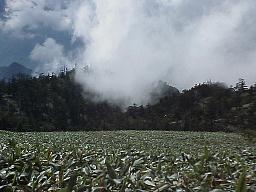 天気の良い日でも午後になると山脈は霧に包まれる事が多い。 霧は中央の写真のように谷間から竜巻の如く現れ、短時間で山の斜面を一気に頂上に向けて駆け上がる |
