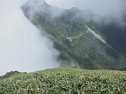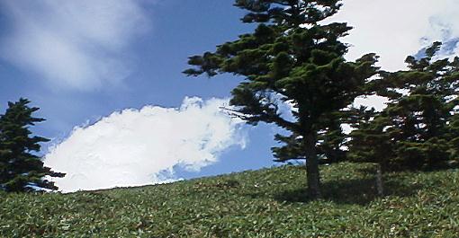 70cm程度の熊笹が隙間なく生息している。真夏の太陽の光のをキラキラと反射させる葉、涼しさを演出する木陰 「女心と秋の空」(私の言葉ではアーリマセンゾーーと)どうりの視界をさえぎる霧の出現と消失。 山々は毎回違った顔を私達に見せてくれる。私は全ての山に、又来るからなと言って下山する・・・ |