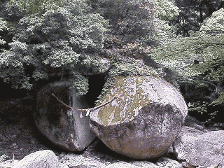 渓谷を登ると写真のように大きな岩がパッチリと割れている