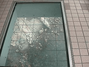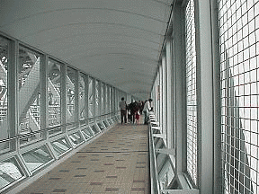 写真右=通路の所々がガラス張り。皆さん上にのりませんネー。