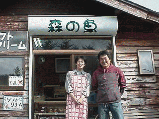 お店の名前=「森の魚」:地元彫刻家に表は魚、裏に葉を彫る方が居られるそうで、この名をつけた。 酪農を営むご主人がしぼった牛乳を使い、奥さんがパンやソフトクリームを作って売っている。 牛乳を温めてもらいパンを食べる。コイツがウマイ。 その後、牛乳タップリのソフトクリーム・・・オジサンも大変美味しくいただきました。 |