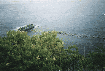 右の写真は岬から九州方面と「三崎」(岬から約10Km東の港)方面を撮影。