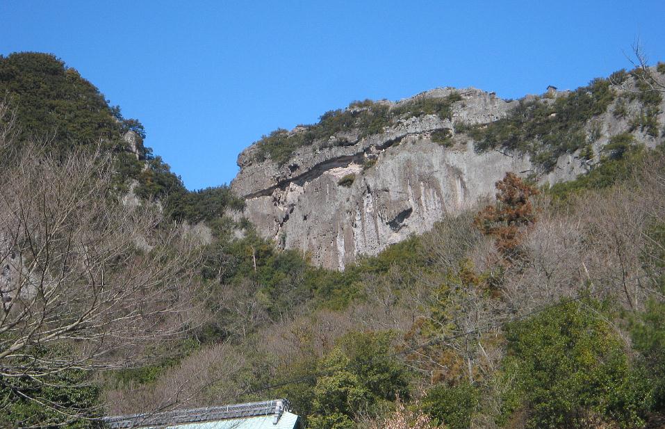 下車して少し歩くと巨大な岩石の山々に出会う。この岩には目と鼻と口があるように見え、且つ本堂方向を向いている。