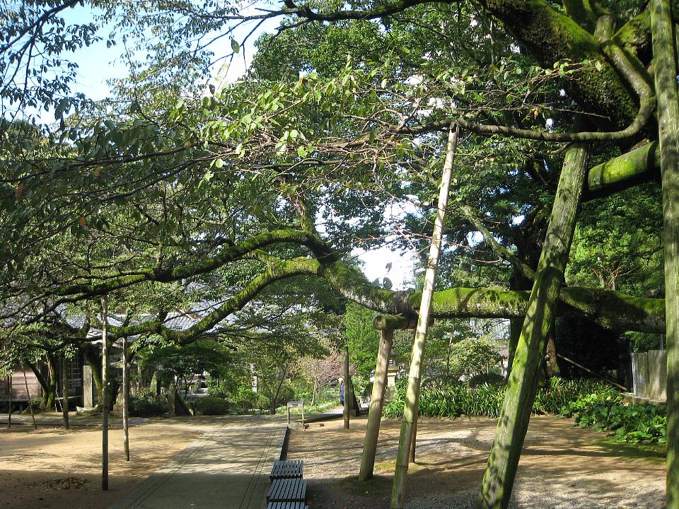 本堂から来た方向を振り返る。支えなしには生きていけない老木(桜かケヤキ?)が踏ん張りを感じさせる。