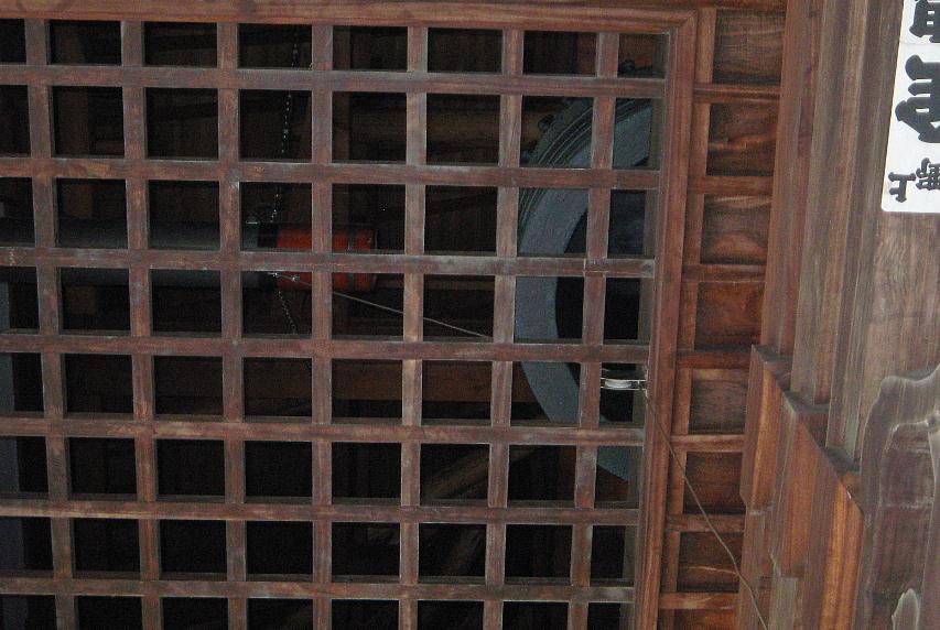 山門入り口中央にロープが垂れ下がっている。 これを引っ張り山門2階にある鐘を打つ。 発想が素晴らしい。