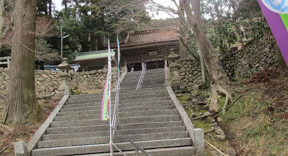 山門に向かい静寂の石段を登る。 古き寺には 大木が多数あり 一時期の 修験道場の風格をも感じる。