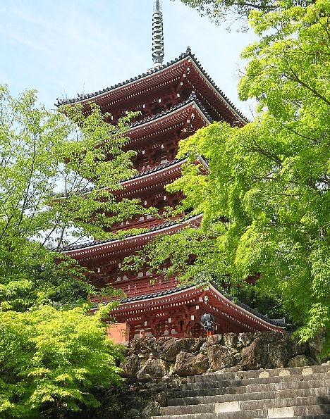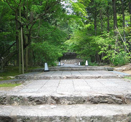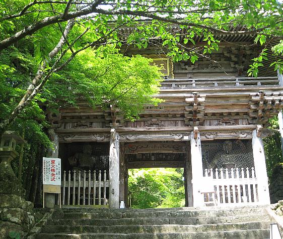 この門を抜けて写真の階段を上がると竹林寺。モミジが多い参道であった。