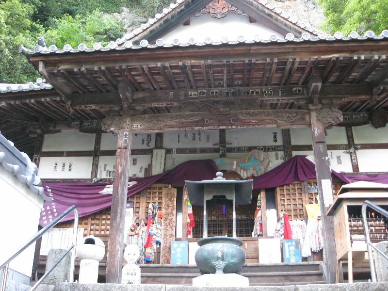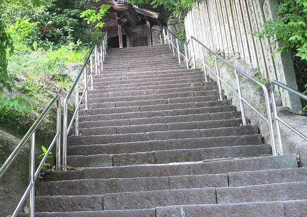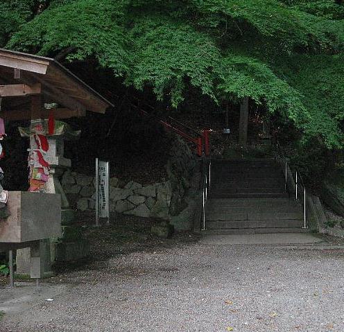 とにかく山の上だ。普通車¥500の有料道路を車で登っても、そこから上の階段の連続は厳しい。 | |