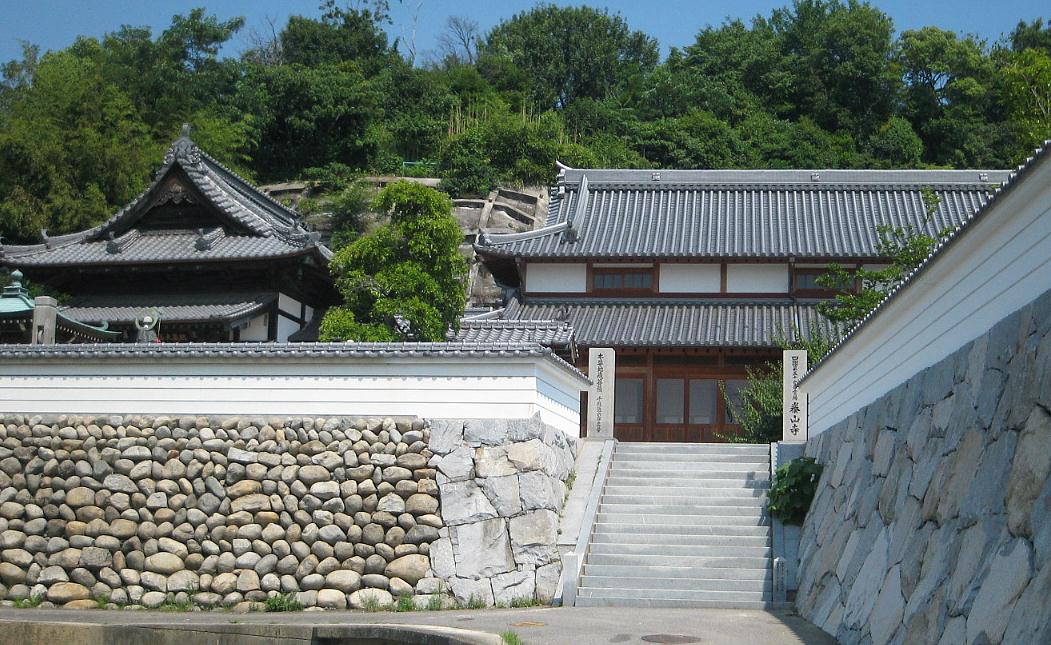 今治市の南西に位置する。広い駐車場から徒歩2分。立派な石垣を通れば寺に行き着く。