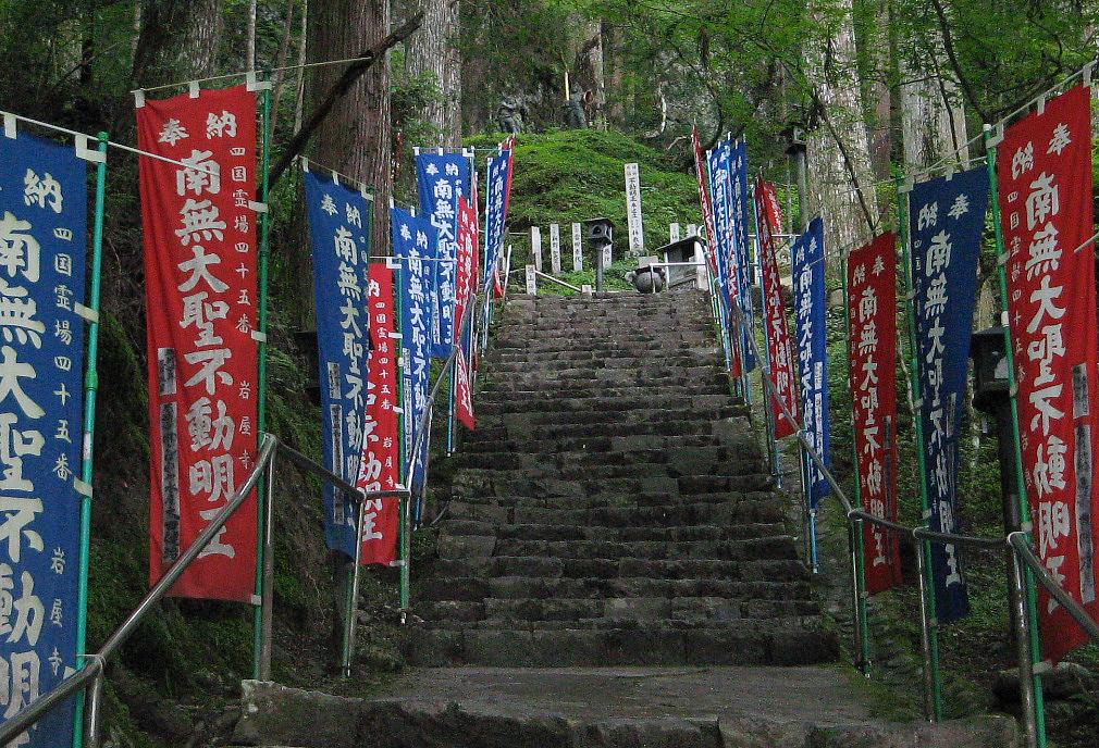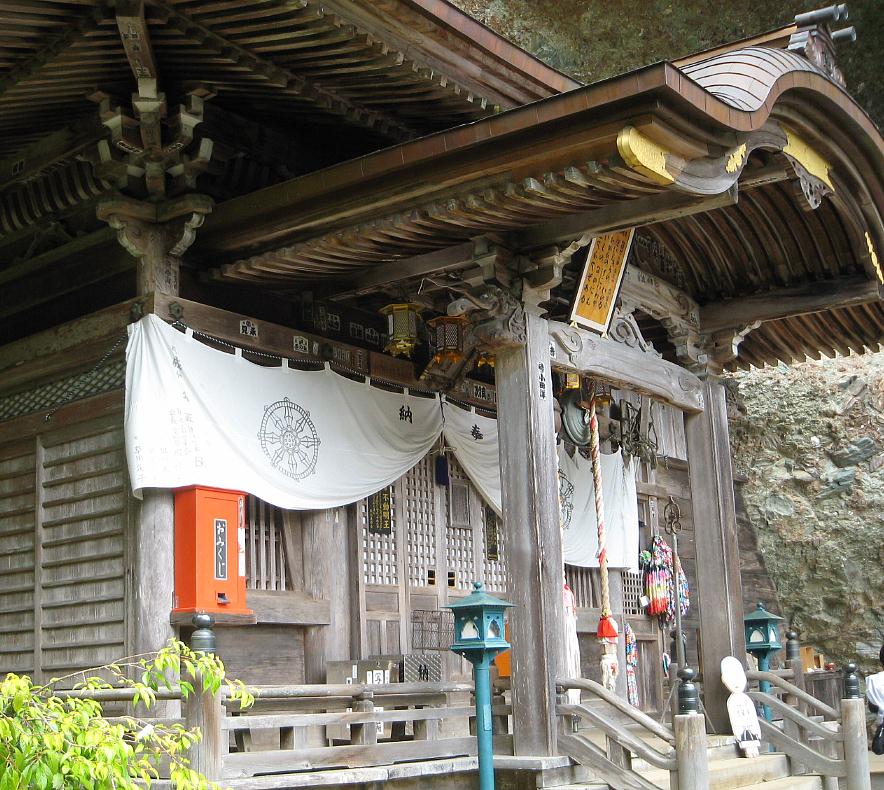 登ってみると屋根の奥面の一部が見える。全面から見るのとは異なり奥面にも屋根がある。TVが本当か聴くのを忘れていた。 この日だけなのか納経所には鍵がかかり数回大声で呼ぶと、しばらくしてご住職が出てきた。その後しばし滞在したが他に人は見えなかった。 | |