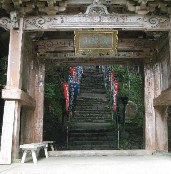 写真左から徒歩のみで登る。寺までは20〜30分。途中に山門がある。 | |