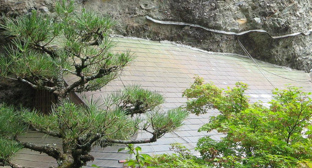 納経所の館の奥面は岩石となっているとTVでも放映された。 |