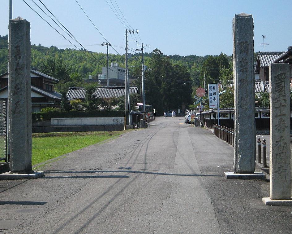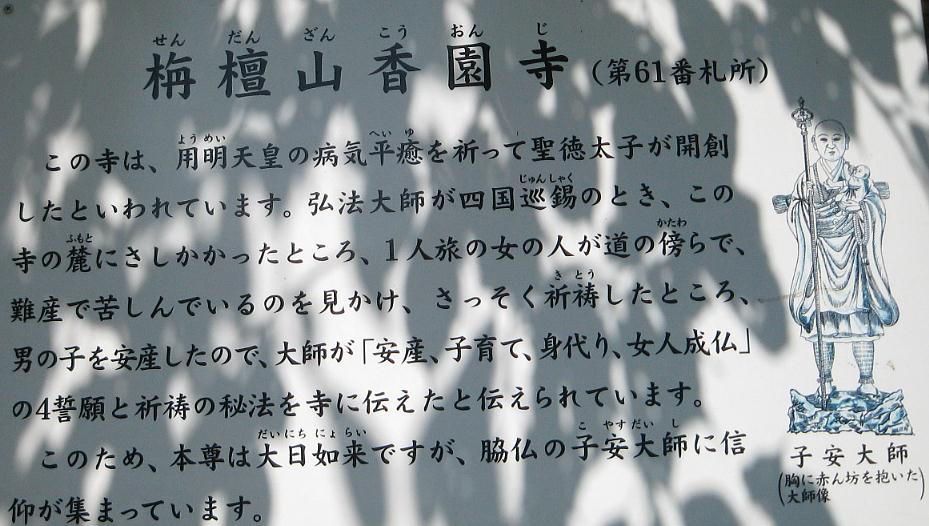 愛媛県西条市の西端から東に向けて61番〜64番が国道沿いに並んでいる。この寺の形は88番中特異である。ご本尊は2F。