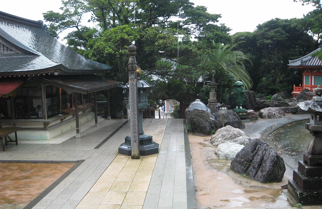 四国最南端の足摺岬に位置する・ここから灯台まで徒歩5分・大雨の中で心は静まった。屋根は胴、ご本尊は三面千手観音菩薩。