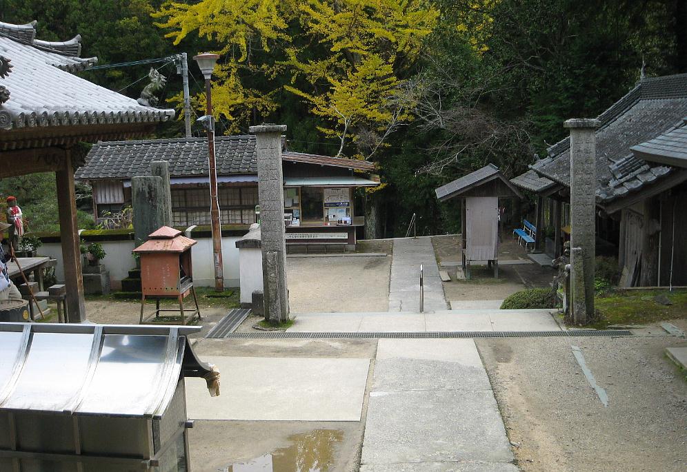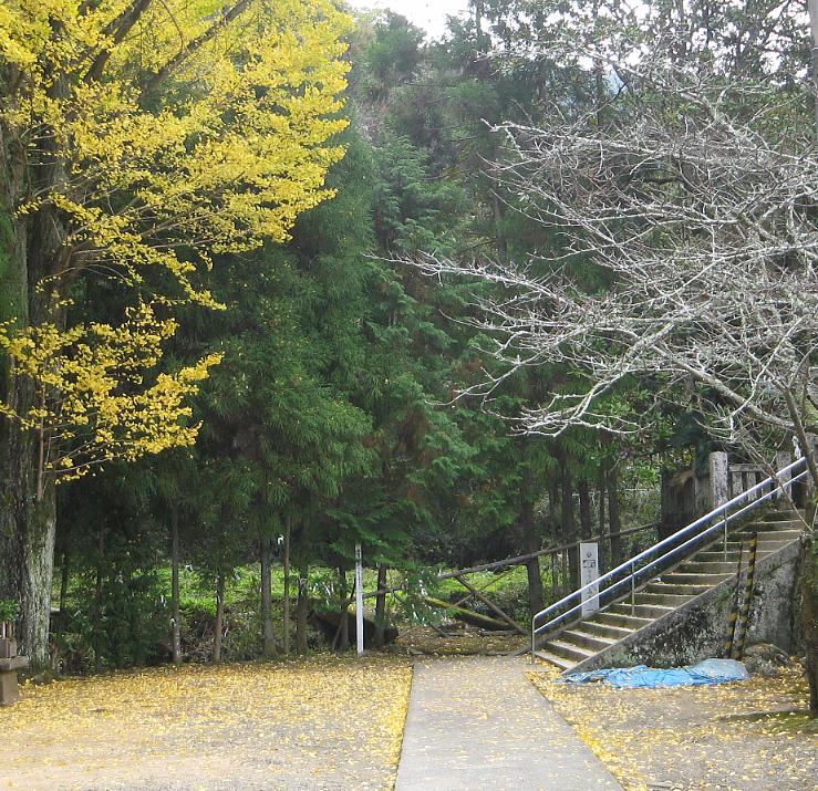 境内の入り口。イチョウが黄色くなり落葉が始まっていた。本堂は右の石段を上がる。