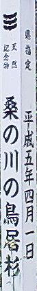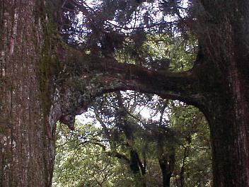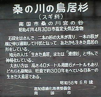 「鳥居杉」正面から見て右の杉が大きい。2本の杉は根元から5mくらいの所で合体している。